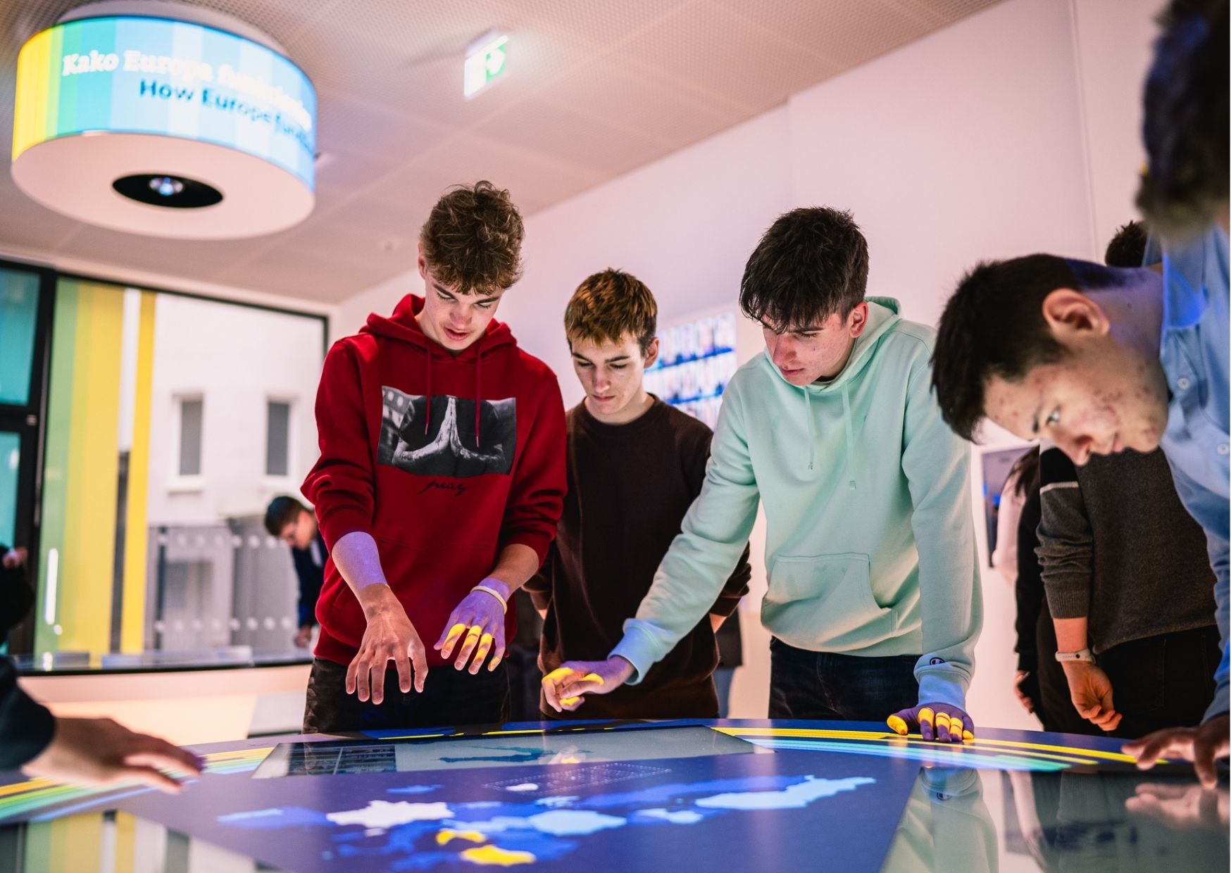 18.00 - 22.00 | | Stalni postav centra Doživi Europu uključuje interaktivne postaje s informacijama o EU temama (projekti, prilike za mlade, borba protiv dezinformacija, itd.), virtualne naočale, te zabavnu fotokabinu s profesionalnim fotoaparatom. Sadržaj je dostupan na 24 službena jezika EU-a. |